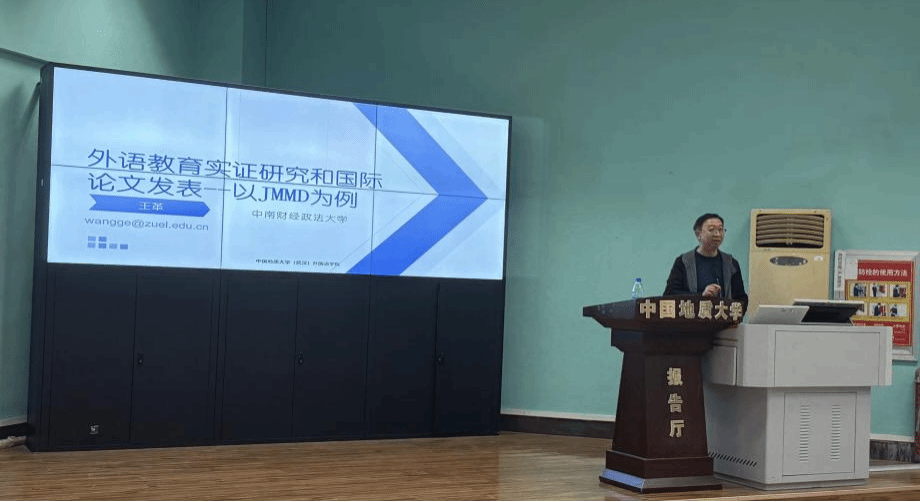 (通讯员:王可可 摄影:于鑫鑫、王子妍)2025年11月13日14:30,beats365“南望今声”外语论坛系列讲座第77期在北一楼学术报告厅举行。中南财经政法大学王革教授应邀莅临beats365,作题为“实证研究和国际论文发表:以国际核刊JMMD为例”的学术讲座。beats365张伶俐副经理主持讲座,师生共100余人参与学习交流。