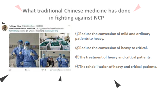 在《跨文化交际》课堂中,李品老师在讲解文化对于不同语境的影响时,特别针对医疗语境,布置员工通过presentation展示中医对于世界的影响,尤其是在这次新冠疫情防控中的影响力。同学们以制作精良、语料详实的幻灯片,生动、深刻地讲述了古老独特的东方医学及博大精深的中医文化在抗疫中的关键作用。这一课堂任务不仅调动了同学们学习语言、运用语言的热情,还大大提升了他们对中医为代表的中华文化的自信。