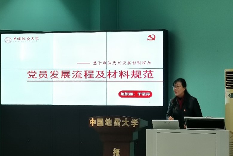 11月27日下午,培训会在北一楼报告厅进行。会议伊始,举行本学期新发展党员入党宣誓仪式,于荣萍老师领誓。面向党旗的铿锵誓词,既让新发展预备党员经历政治新生、精神洗礼,也让老党员在重温誓词中,回望入党初心,恪守政治承诺。
