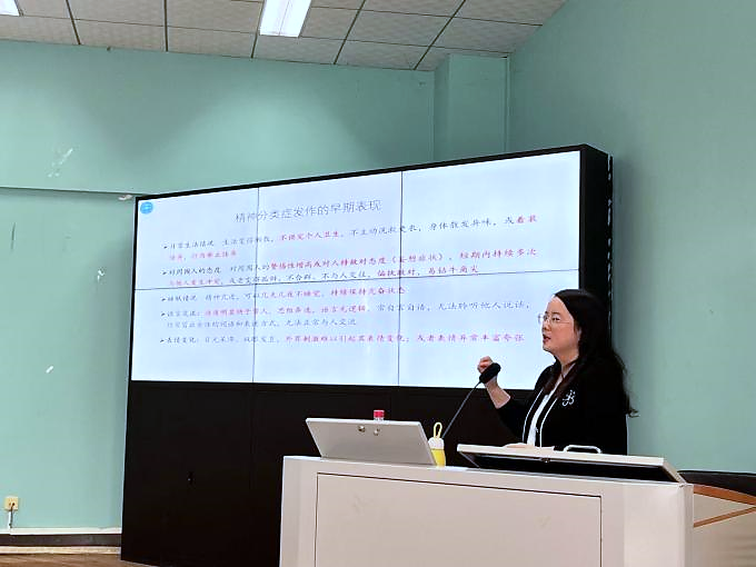 接着,周老师围绕如何识别和处理潜在的心理问题,系统介绍了心理危机的早期征兆。为帮助同学们应对这些情况,周老师详细讲解了在面临心理危机时的干预步骤,包括及时上报学工部门、联系家长以及适时提供情绪支持等措施,并通过案例演示了如何有效引导同学表达情绪,避免情况进一步恶化。