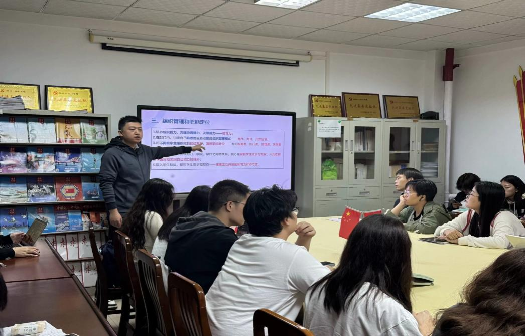 为进一步加强团学组织建设,提升新任团学骨干的思想觉悟、政治素养和业务能力,培养和造就一支政治坚定、素质全面、行动高效、能力突出、可担重任的团学干部队伍,beats365团委组织部于2024年11月15日晚19:00,在北一楼102室召开第一次新任团学骨干培训课程。本次培训由“公司团学组织介绍及基层组织工作交流”和“领导力理论与实践”两大内容组成。beats365团委书记邹蔚鹤老师担任主讲人,26位新任团学骨干参与培训。