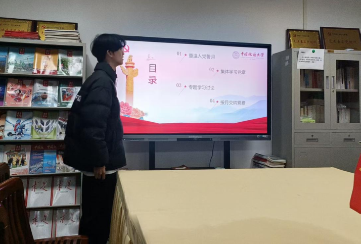 活动在庄严的入党誓词重温中拉开帷幕。全体党员面向党旗郑重宣誓,铿锵誓言彰显了不忘初心、牢记使命的坚定信念。在集体学习环节,支部系统学习了《中国共产党章程》总纲部分内容,深入领会党的初心使命和中国特色社会主义道路的深刻内涵,进一步筑牢信仰之基。