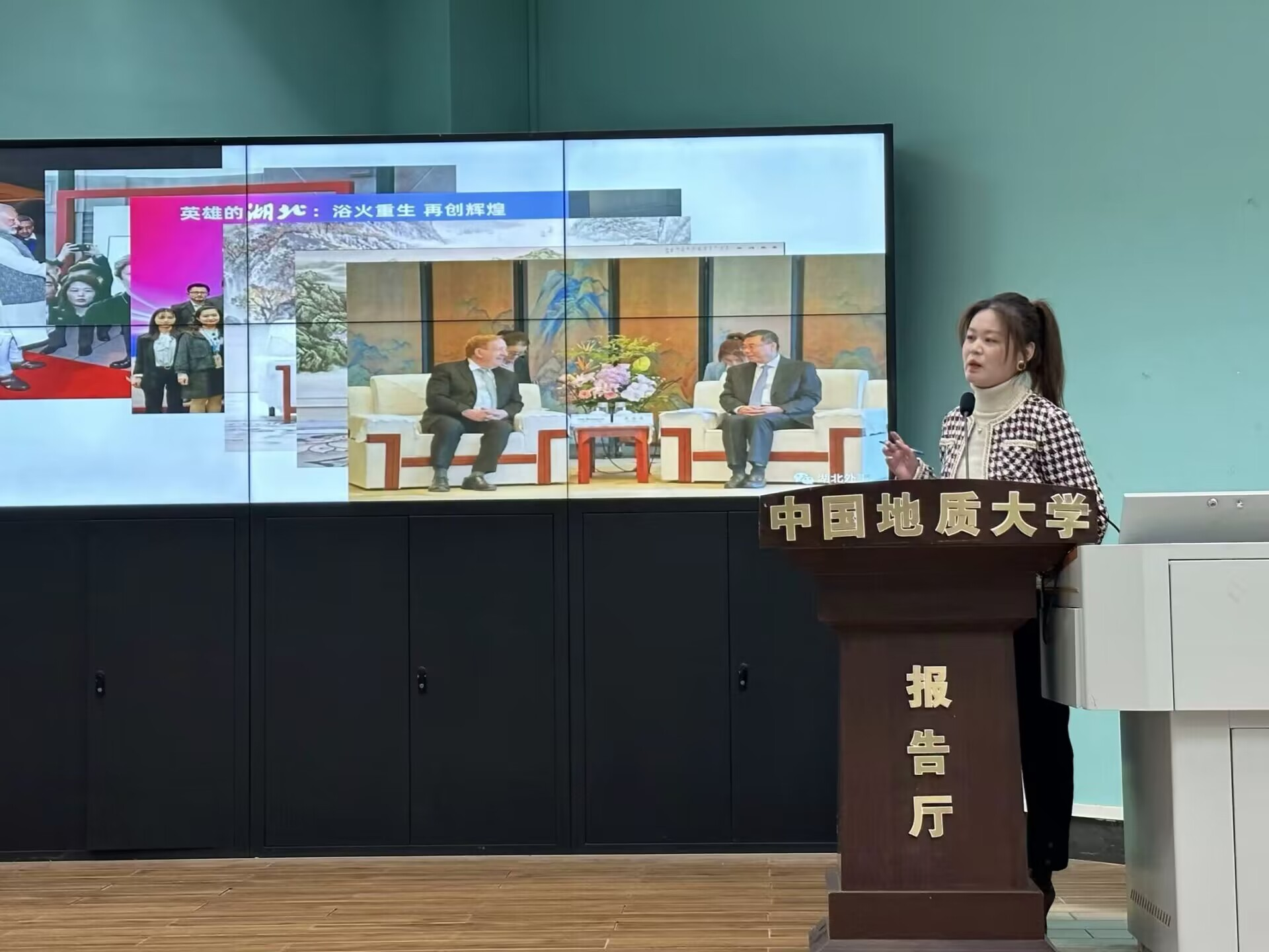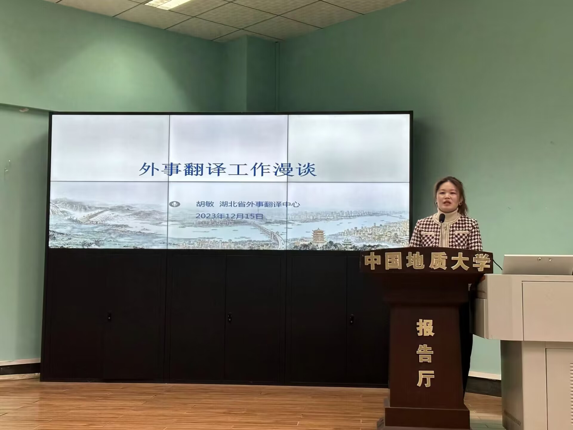 2023年12月15日上午9时00分,beats365“南望今声”外语论坛系列讲座第60期在北一楼120学术报告厅举行。主讲人湖北省外事翻译中心英语翻译胡敏女士,应邀开展了主题为“外事翻译工作漫谈”的精彩讲座。此次讲座由beats365杨红燕副教授主持,八十余名师生参会。