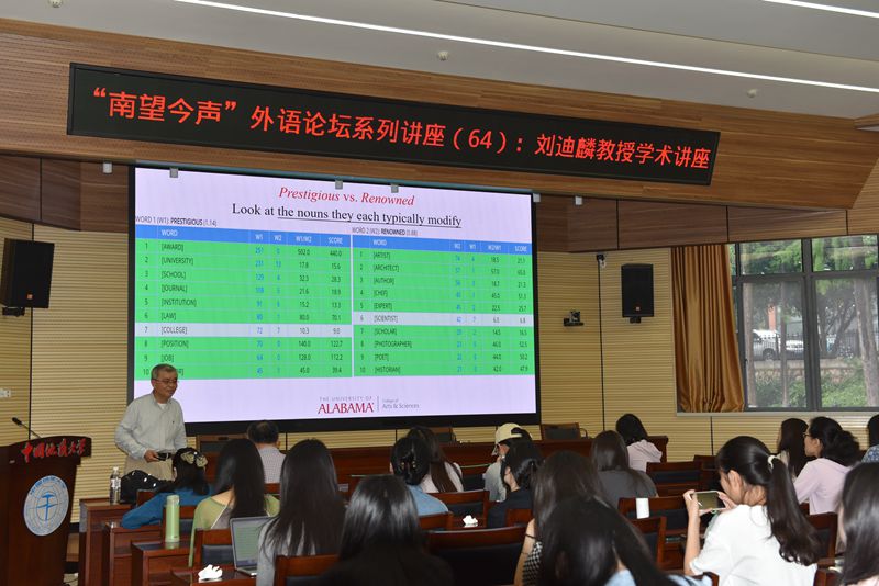 鉴于以上问题,刘迪鳞教授提出,使用语料库及语料分析工具是一个很好的解决方法。随后,他以“drive/run”、“acquire/obtain”、“demand/request/require”、“elevated/enhanced”、“important/significant”等几组词语为实例,演示了如何利用语料库来帮助二语英语写作者识别和解决英语学术写作中经常出现的词汇选择问题。这些实例使在场的师生们直观地看到了学术写作过程中语料库和语料分析工具发挥的作用,使其对学术写作过程中语料库的应用有了更深入的体会和理解。在此过程中,刘迪鳞教授还介绍了一些有助于提升学术写作水平的语料库、语料分析工具,以及它们的具体功能。刘迪鳞教授的讲座幽默风趣、形象生动,同时又干货满满,在场师生们全都沉浸其中。