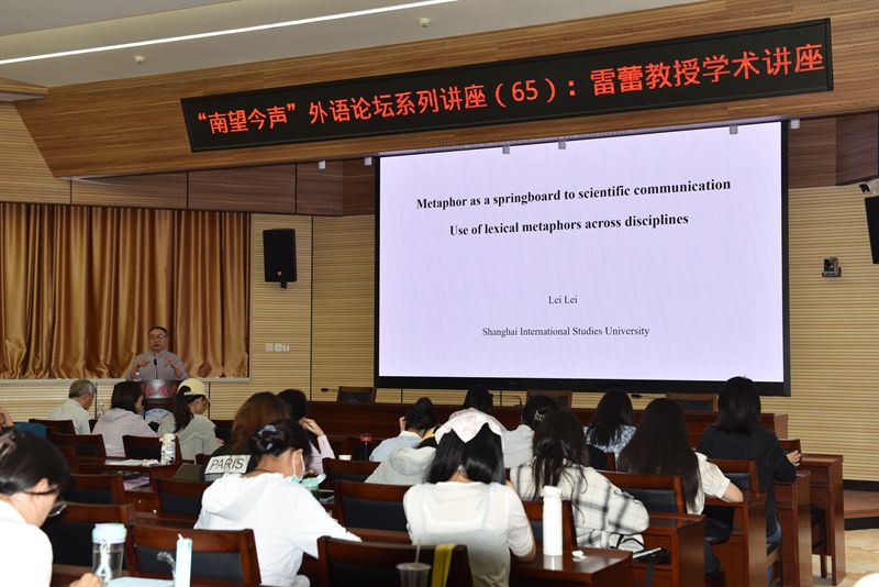 2024年5月31日上午9时45分,beats365“南望今声”外语论坛系列讲座第65期在东区八角楼报告厅举行。本期讲座特邀上海外国语大学雷蕾教授,为我们带来了一场题为“Metaphor as a Springboard to Scientific Communication: A Large-scale Study of the Use of Lexical Metaphors Across Disciplines”的精彩讲座。此次讲座由beats365张伶俐副经理主持,参会人员有相关专业老师以及研究生共计100余人。