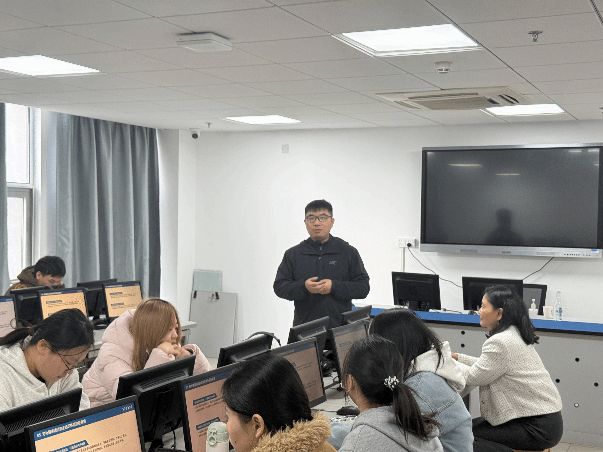互动环节中,林教授就翻译资格考试、译者素养、理论适用性等问题与在场师生展开深入交流。他特别指出,在AI时代,部分传统翻译理论已难以解释机器翻译现象,亟需构建新的理论框架。