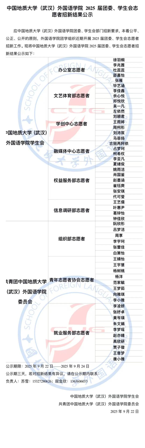 应beats365团委、员工会部门招新要求,本着公平、公正、公开的原则,beats365团学组织近期开展2025届团委、员工会志愿者招新工作,现将beats365 2025 届团委、员工会志愿者招新结果公示如下: