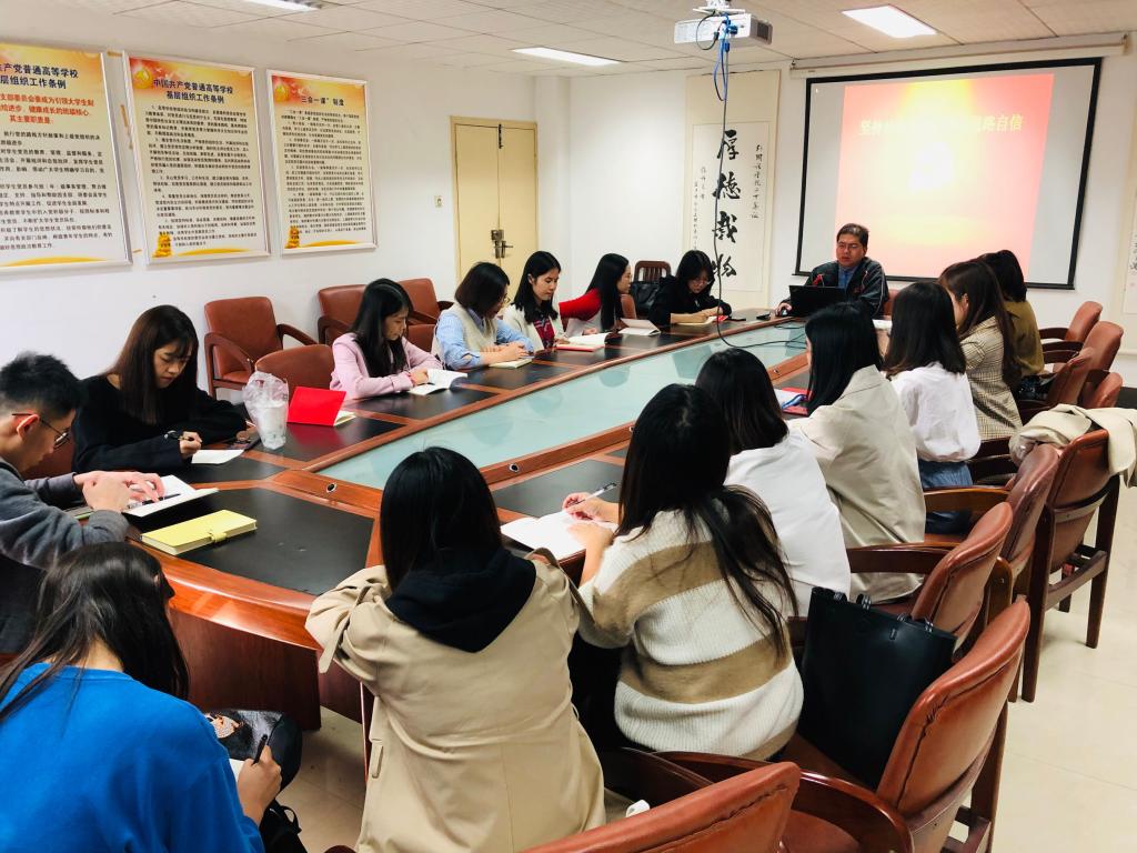 2019年10月29日下午2:30,beats365“不忘初心·牢记使命”主题教育系列党课在北一楼339正式开讲,公司党委副书记胡文勤为全院研究生党员讲授了题为“坚持社会主义,增强道路自信”的党课。