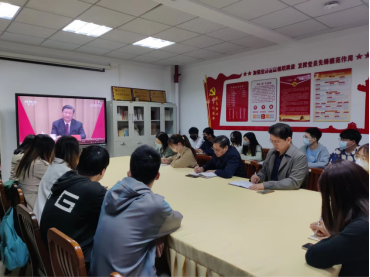 在观看直播的过程中,同学们全神贯注、精神饱满,边学习边做好笔记。直播结束后,全体与会师生围绕习近平总书记建团百年重要讲话精神召开了座谈会,2021级研究生彭赞美、2018级本科生廖荣万以及2019级本科生陈川岚作为员工代表结合自身实际积极分享学习体会,发言内容立场坚定、感情真挚、体悟深刻,会议室内掌声连连。