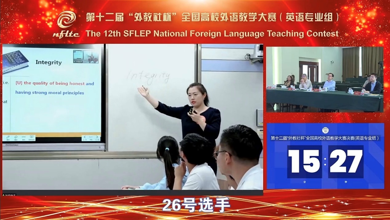 在9月23-25日举办的第十二届“外教社杯”全国高校外语教学大赛(外语专业组)全国决赛中,公司唐慧君老师从参与湖北省决赛的30余位高校参赛选手中脱颖而出,代表湖北省参赛,荣获全国三等奖,为公司参加该项赛事历年来取得的最好成绩。