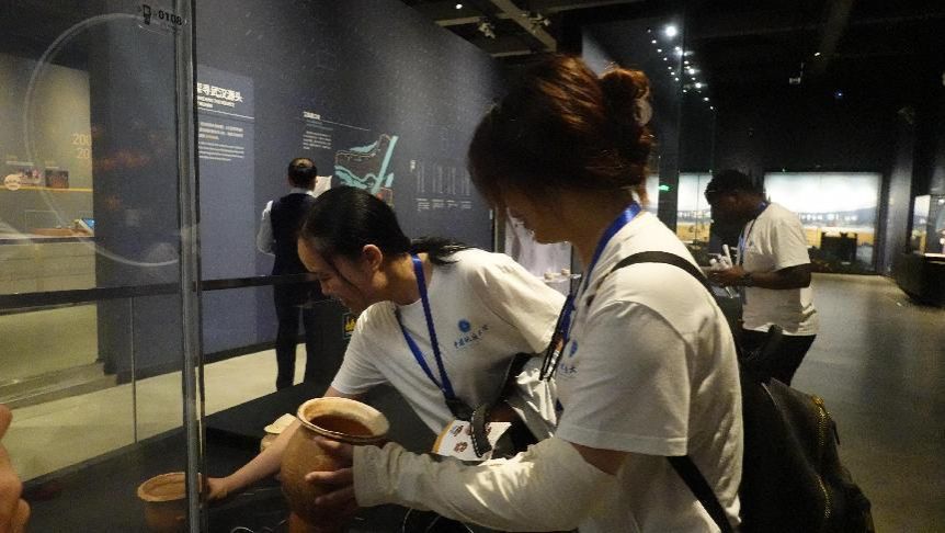 实践团成员通过触摸陶片对话前年文物