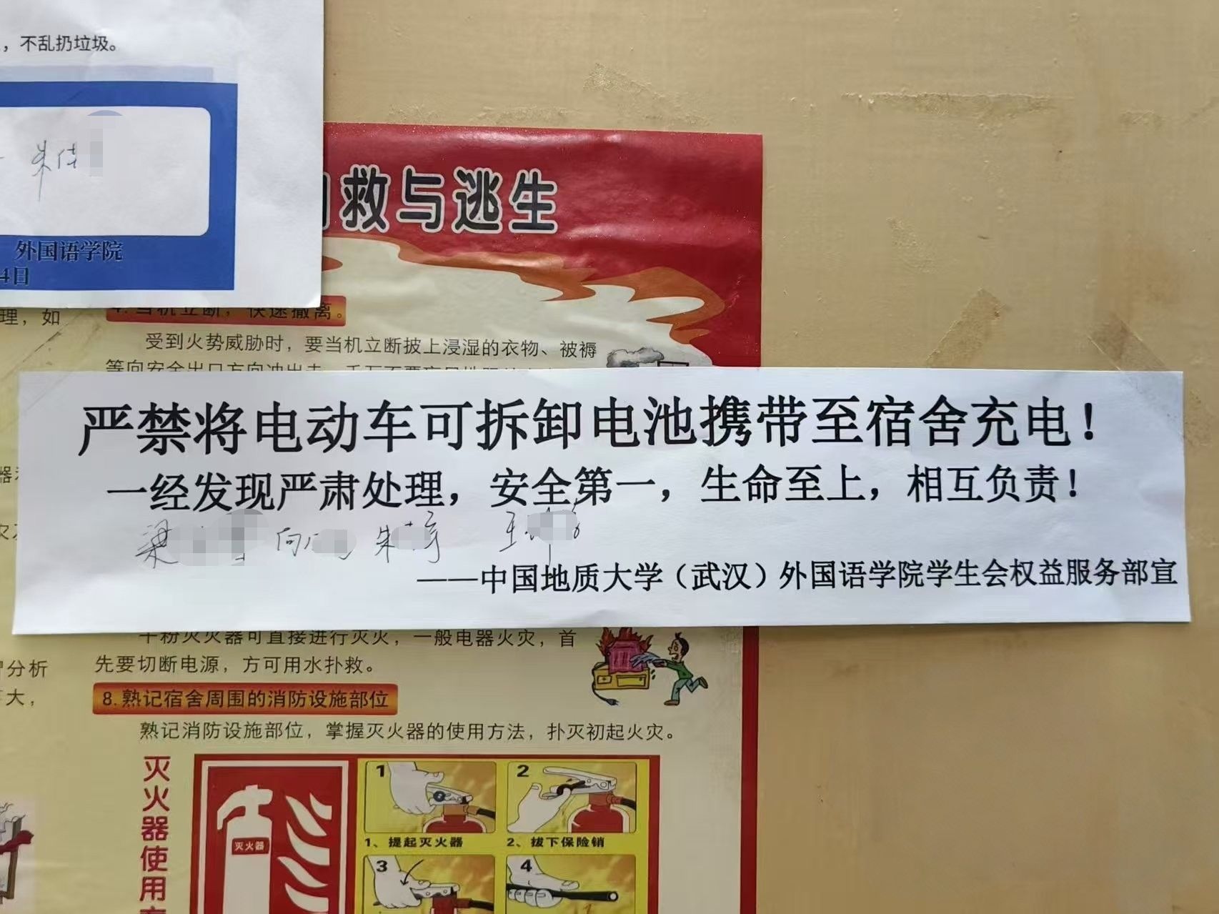 此外,公司特别制作电动车消防安全提示,以宿舍为单位开展电动车安全承诺接力活动。各宿舍集体学习电动自行车充电规范后,在提示条上签署姓名,实现安全责任“到寝到人”。