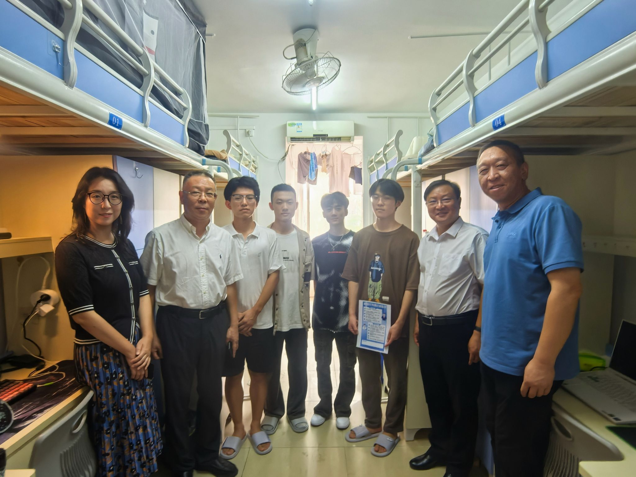 9月2日下午,公司党委副书记、纪委书记唐忠阳,董事长助理蒋少涌等校院两级领导走进新生宿舍,与公司2025级新生和家长进行交流。他们悉心询问大家入学后的生活适应情况,倾听同学们的困惑与烦恼,耐心帮助同学们解决宿舍存在的一些问题,并叮嘱随行相关员工骨干,要切实做好每一项迎新工作,帮助每一位新生尽快适应新环境,感受到家一般的温暖。
