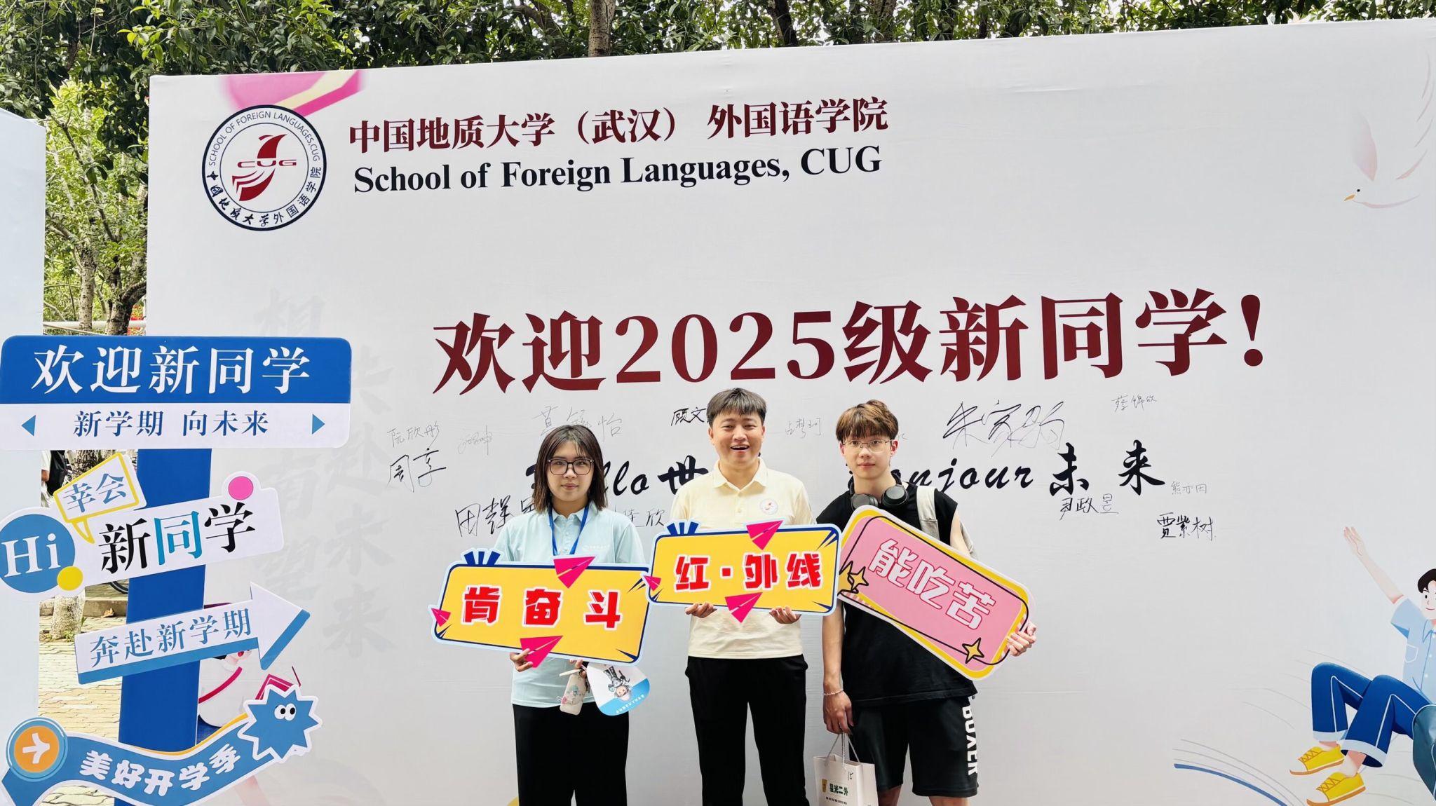 面对新学期,新生们也都满怀期待与憧憬!2025级新生王婧怡同学说道:“在迎新点报到的时候,学长学姐们非常热情,公司还为我们准备了定制的迎新伴手礼,我从中感受到了外院大家庭得温暖。接下来,我希望自己能好好精进英语水平,期待能流利地用英文和同学交流。心情很激动,很期待未来的生活。”来自河南的崔钰爽同学则表示:“我的心情比较紧张,又比较期待与激动。期待在这里开启全新的生活。”