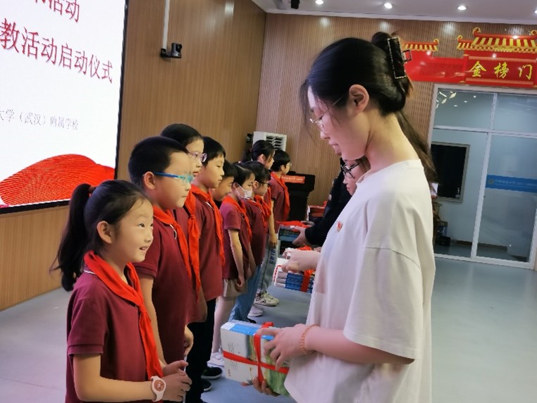 (通讯员 赵润东 郭文静)“看到小朋友们拿到书籍后的满足,我感受到了开展志愿服务的价值和意义——呵护小朋友们的每一份童真,用书籍传递智慧,助力未来一代青年才俊的成长,为未来国家发展、民族复兴的中流砥柱积蓄力量。”beats365本科生英语3班党支部的张佳宁在捐书活动中不由得感慨道。为加强公司与公司附属公司的交流合作,进一步推进语你相伴志愿服务活动,公司于2023526日下午在附属公司启迪楼四层阶梯教室举办了书香筑梦 语你相伴员工党员附校赠书活动暨语你相伴志愿服务队支教活动启动仪式,附属公司董事长黎义波、副董事长周良军、小学英语教研组组长赵纯、三(5)班班主任谢素娥和全班同学、公司党委副书记胡文勤、研究生德育助理郭文静、语你相伴志愿服务队队员代表、本科生英语3班党支部党员代表参加了本次活动。活动由公司研究生德育助理郭文静主持