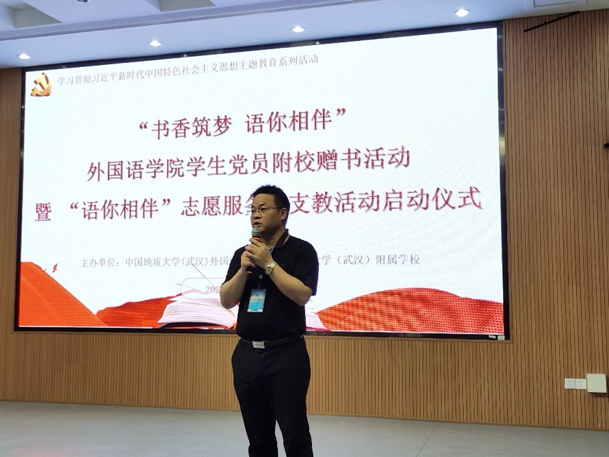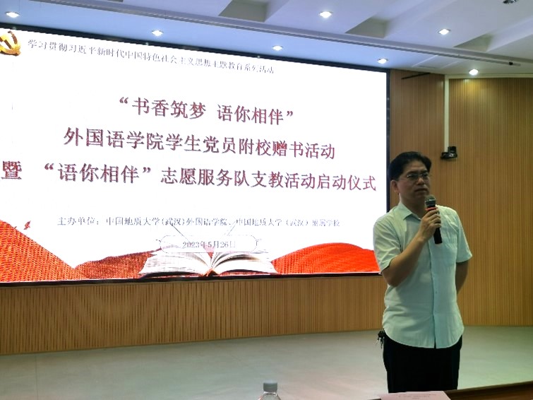 活动最后,公司党委副书记胡文勤讲话。他说,书籍是人类进步的阶梯,希望本次捐书活动能激发附校同学们的阅读兴趣,与书籍相伴,以读书为荣,徜徉书海汲取智慧,追逐梦想茁壮成长;也祝愿公司“语你相伴”志愿服务队能够在今后的支教活动中坚定理想信念,发扬志愿精神,将孩子们领进知识的汪洋,帮助他们开拓国际视野,领略不同国家语言和文化的独特魅力。